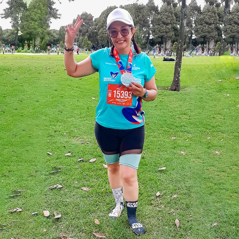 “Correr es mi terapia... Me gocé esos 10k en la MMB, bajé tiempo y me encantaron las medias. Gracias, son geniales.”